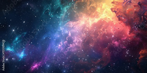 Naklejka premium Cosmic nebula in vibrant colors, showcasing swirling clouds of gas and stars...