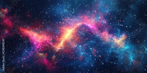 Naklejka premium Cosmic Nebula Network Illuminated With Vibrant Hues