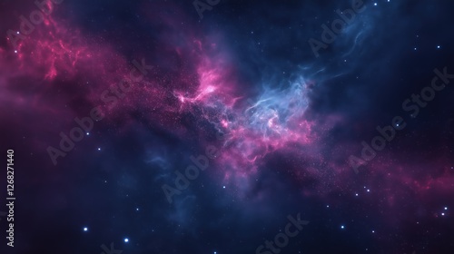 © Yopi, Naklejka premium Cosmic Nebula Pink And Blue Hues In Dark Starry Night