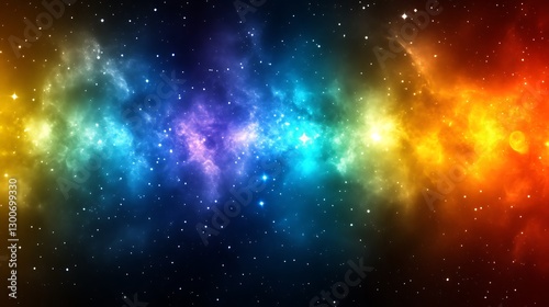 Naklejka premium Cosmic Nebula Rainbow Colors Across Starry Space
