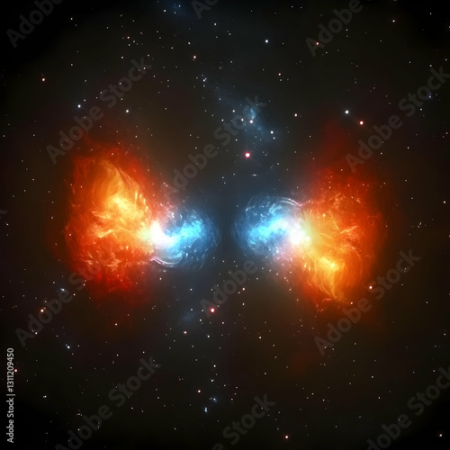 Naklejka premium Cosmic Nebula Red and Blue Celestial Entities in Deep Space