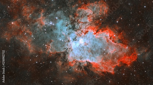 © ryu, Fototapeta premium Cosmic Nebula Red and Teal Emission Nebula in Space. Background stars, galactic, astronomy image