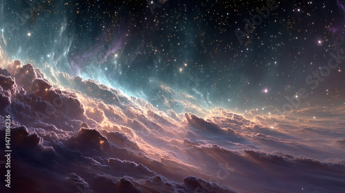 © BaiBoon88, Fototapeta premium Cosmic nebula spectacle with sparkling stars space digital art universe aerial view celestial beauty