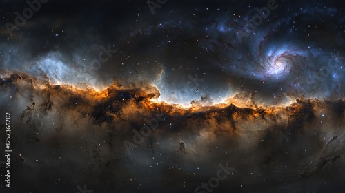 Fototapeta premium Cosmic Nebula Spiral Galaxy and Stellar Clouds