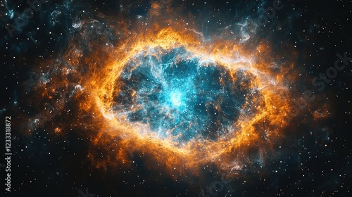 Obraz premium Cosmic Nebula Stellar explosion in space, fiery gases, distant stars, educational use