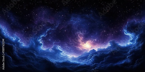 Fototapeta premium Cosmic Nebula Surreal Art Nouveau Deep Space Background with Stars and Soft Glowing Lights