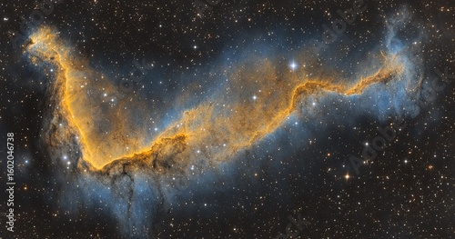 © nur, Fototapeta premium Cosmic nebula, swirling golden-blue hues