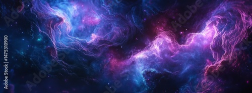 Fototapeta premium Cosmic Nebula: Swirling Purple and Blue Celestial Cloudscape