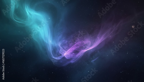 © Rani, Naklejka premium Cosmic Nebula Swirls of Turquoise and Purple Glow in the Vastness of Space