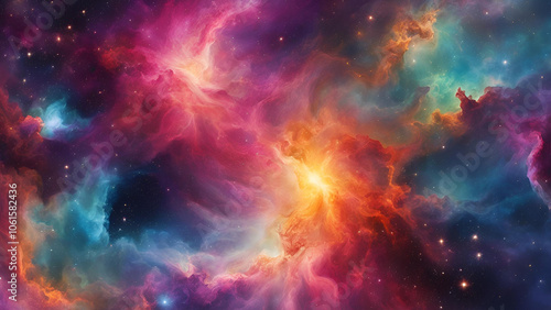 Fototapeta premium Cosmic Nebula: Vibrant Hues of a Celestial Wonder