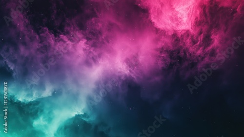 Fototapeta premium Cosmic nebula, vibrant pink teal clouds, stellar background, space art