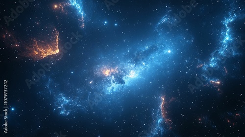 Naklejka premium Cosmic Nebula with Blue and Orange Gaseous Clouds
