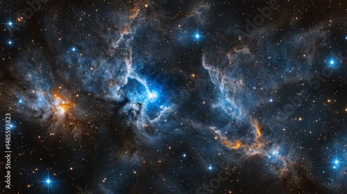 © Lintan, Fototapeta premium Cosmic Nebula with Blue and Orange Hues