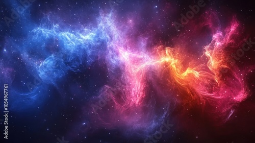 Obraz premium Cosmic Nebula with Blue and Red Swirls and Stars