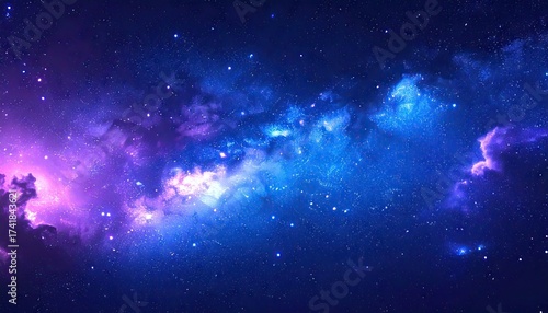 Obraz premium Cosmic Nebula with Deep Blue and Purple Hues Dotted with Starry Light in Dark...