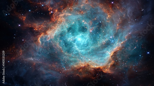 Fototapeta premium cosmic nebula with electric blue and red swirls in deep space, mesmerizing...