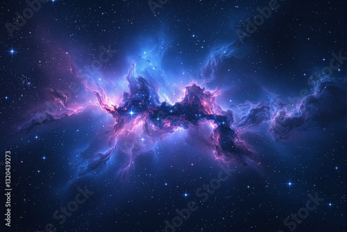Obraz premium Cosmic nebula with glowing blue and purple gaseous clouds in deep space,...