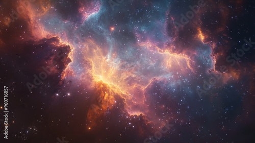 Fototapeta premium Cosmic Nebula with Orange and Blue Clouds and Stars