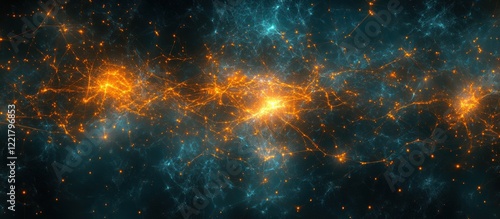Naklejka premium Cosmic Nebula with Orange and Blue Glowing Filaments.