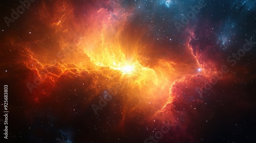 © BOJOShop, Naklejka premium Cosmic Nebula with Orange and Blue Hues.