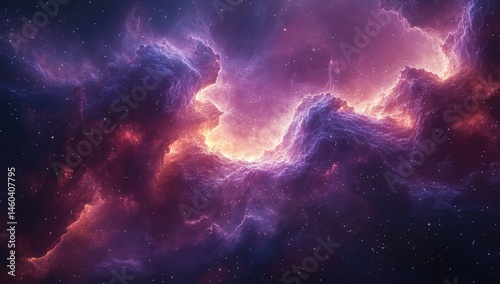 © adifa, Fototapeta premium Cosmic Nebula with Purple, Orange, and Stars.