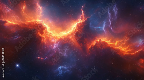 Naklejka premium Cosmic Nebula with Stars and Firey Gas Clouds