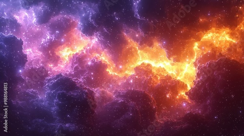 Naklejka premium Cosmic Nebula with Stars and Glowing Clouds