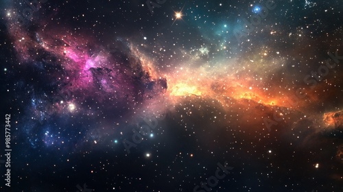 Fototapeta premium Cosmic Nebula with Stars and Glowing Gas Clouds