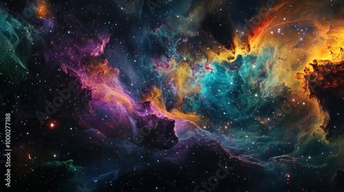 Fototapeta premium Cosmic Nebula with Swirling Colors and Scattered Stars