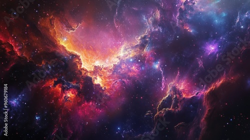 Fototapeta premium Cosmic Nebula with Swirling Gas and Stars