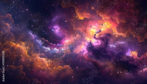 Fototapeta premium Cosmic Nebula with Swirling Gaseous Clouds and Distant Stars