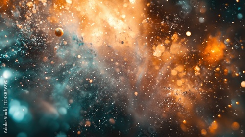 © AbstractAI, Obraz premium Cosmic nebula with vibrant colors featuring planets luminous stars and empty space for text or overlay design