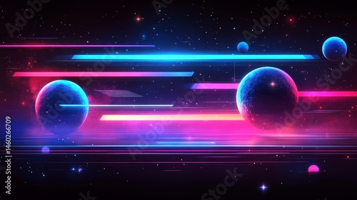 Obraz premium Cosmic neon light streaks across space bodies.