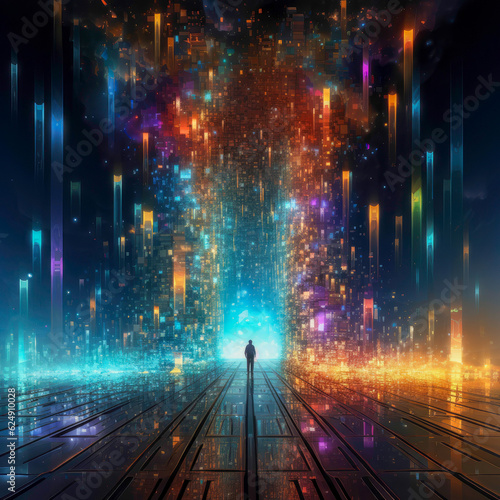 © Techtopia Art, Naklejka premium Cosmic Nexus Digital Interface Unveiling the Akashic Records AI Navigator, Fractal Pixel Generative Archive, and Infinite Knowledge