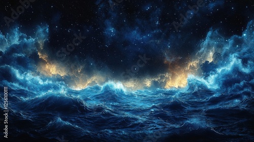 © abrardsgn, Fototapeta premium Cosmic Night Sea with Stars