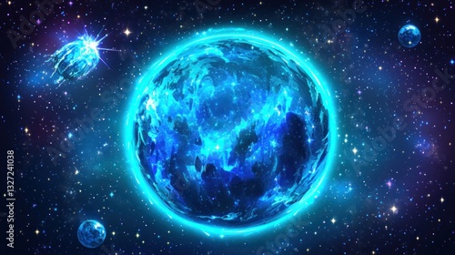 Obraz premium Cosmic Planet, Stellar, Fiery, Outer Space