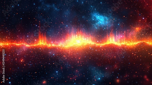 © Biancaart, Naklejka premium Cosmic Radiance: An Energetic Depiction of Stellar Light and Galaxy Dust