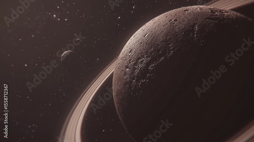 © Novan, Naklejka premium Cosmic ringed planet, distant stars