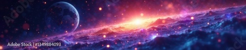 © Prayad, Fototapeta premium Cosmic ripples through shimmering stardust veil, celestial, galaxy
