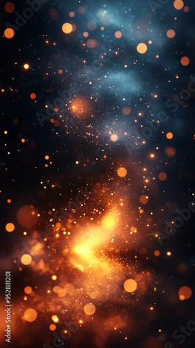 Obraz premium Cosmic scene with glowing, golden light particles and a nebulous backdrop...