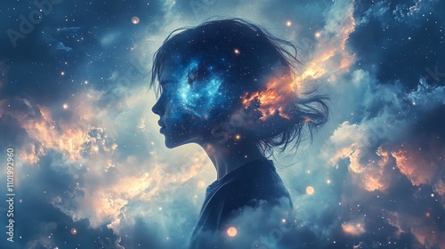 © ntpscl, Obraz premium Cosmic silhouette a mystical landscape of galactic dreams