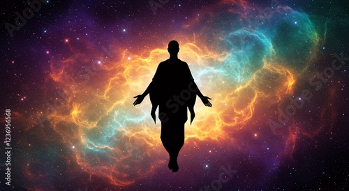 Naklejka premium Cosmic Silhouette Man Nebula Spiritual Art