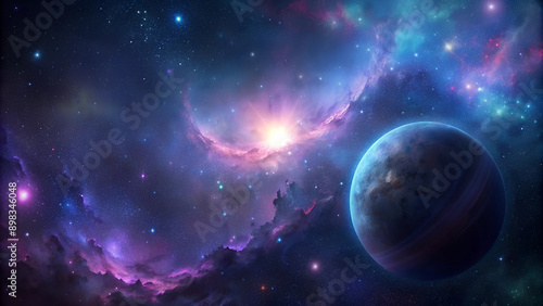 Fototapeta premium Cosmic Space Scene with Planets and Nebulae, Deep Colors, Sci-Fi...
