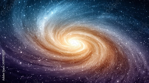 Obraz premium Cosmic Spiral Galaxy Blue, Orange, and Yellow Hues in Deep Space