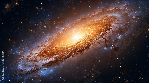 © Yuliana, Fototapeta premium Cosmic spiral galaxy with vibrant hues in deep space.