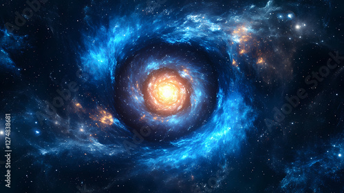 Obraz premium Cosmic spiral with glowing central star on deep space background. Magnetic...