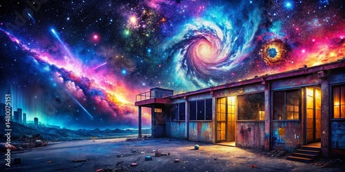© Sirinporn, Obraz premium Cosmic Spray Paint Galaxy Backdrop Website Design - Abstract Texture