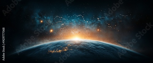Obraz premium Cosmic Sunrise Over Earth