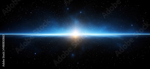 © Kzr808, Fototapeta premium Cosmic sunrise over planet, starscape background, space exploration concept