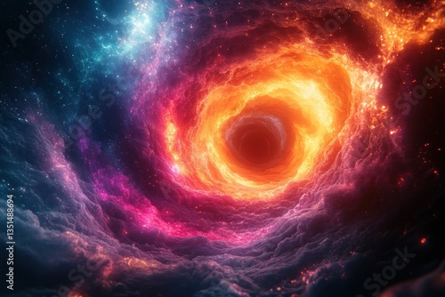 © surya, Obraz premium Cosmic Swirl Fiery Black Hole in Nebula with Starry Background